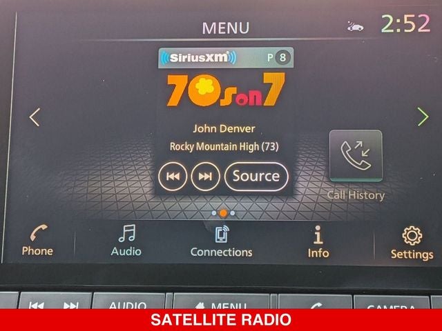 - Radio: AM/FM -inc: 6 speakers, NissanConnect featuring Apple CarPlay and Android Auto, 8" color touch screen display, Bluetooth®, WiFi hotspot and NissanConnect services powered by SiriusXM