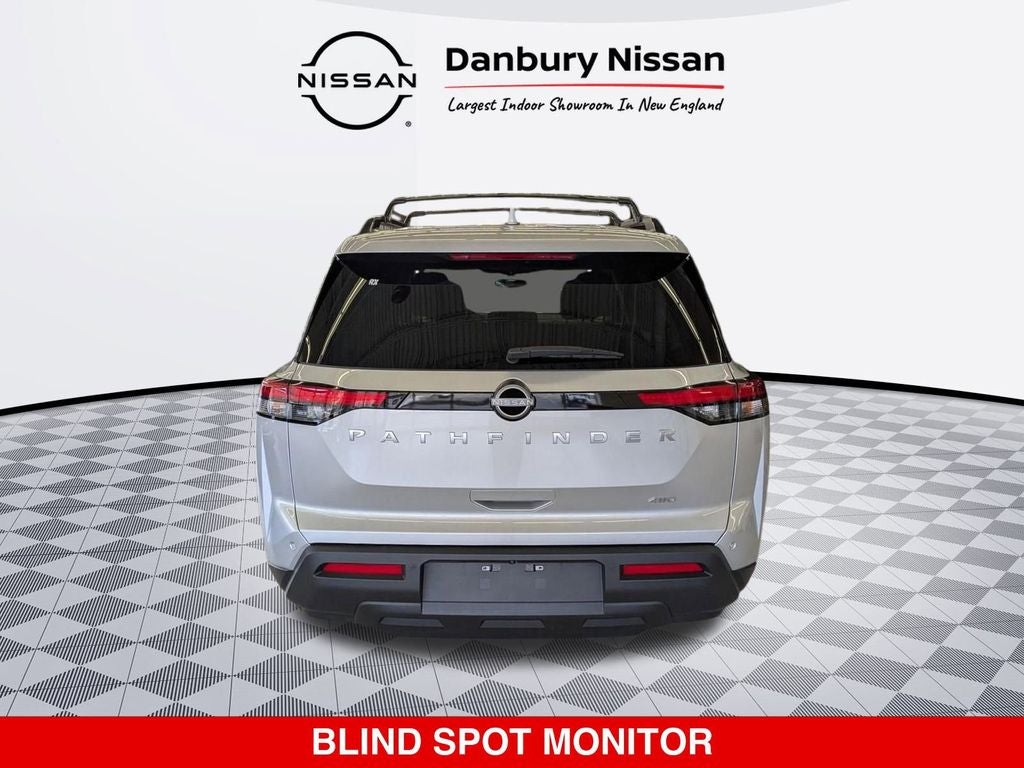 Bruce Bennett Nissan INFINITI of Danbury is proud to present you with another True Market Priced Vehicle. This 2025 Nissan Pathfinder SV is loaded with the following Factory Options: 4WD 4WD, 3rd row seats: bench, 4-Wheel Disc Brakes, 6 Speakers, ABS brakes, Air Conditioning, Alloy wheels, AM/FM radio: SiriusXM, Auto High-beam Headlights, Automatic temperature control, Bench Seat Carpeted Floor Mats (set of 4), Brake assist, Bumpers: body-color, Cloth Seating Surfaces, Cross Bars, Delay-off headlights, Driver door bin, Driver vanity mirror, Dual front impact airbags, Dual front side impact airbags, Electronic Stability Control, Emergency communication system, Four wheel independent suspension, Front anti-roll bar, Front Bucket Seats, Front Center Armrest, Front dual zone A/C, Front reading lights, Fully automatic headlights, Heated door mirrors, Heated Front Bucket Seats, Heated front seats, Illuminated entry, Knee airbag, Leather steering wheel, Low tire pressure warning, NissanConnect featuring Apple CarPlay and Android Auto, Occupant sensing airbag, Outside temperature display, Overhead airbag, Overhead console, Panic alarm, Passenger door bin, Passenger vanity mirror, Power door mirrors, Power driver seat, Power Liftgate, Power steering, Power windows, Radio data system, Radio: AM/FM Audio System with NissanConnect, Rear air conditioning, Rear anti-roll bar, Rear Parking Sensors, Rear reading lights, Rear seat center armrest, Rear side impact airbag, Rear window defroster, Rear window wiper, Reclining 3rd row seat, Remote keyless entry, Security system, Speed control, Speed-sensing steering, Split folding rear seat, Spoiler, Steering wheel mounted audio controls, Tachometer, Telescoping steering wheel, Tilt steering wheel, Traction control, Trip computer, Turn signal indicator mirrors, Variably intermittent wipers, and Wheels: 18 x 8J Painted Alloy!! Price includes: $5000 - Nissan Customer Cash. Exp. 03/31/2026