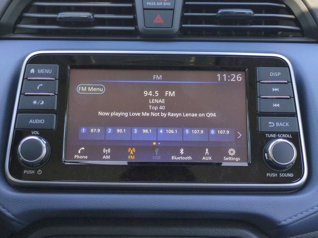 • Radio: AM/FM Audio System -inc: RDS, MP3, aux-in, 7" Advanced Drive-Assist Display, NissanConnect featuring Apple CarPlay and Android Auto, Bluetooth® hands-free phone system, streaming audio via Bluetooth®, interface for iPod and other compatible devices, hands-free text messaging assistant, Siri Eyes Free/Google Assistant voice recognition, 4 speakers and 3 USB ports (2-charge only)