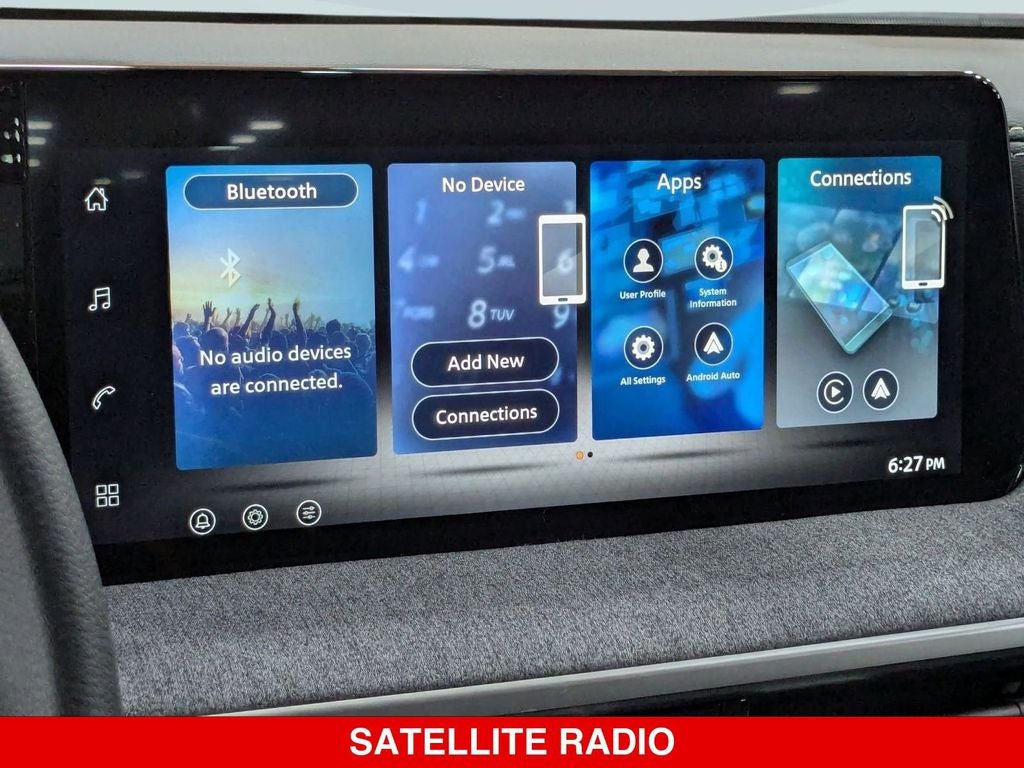 - Radio: AM/FM/SiriusXM Audio System -inc: 12.3" color touchscreen display w/4 speakers, Bluetooth® hands-free phone system, streaming audio via Bluetooth®, NissanConnect featuring wireless Apple CarPlay, wireless Android Auto, Siri eyes free and hands-free text messaging assistant, audio and Bluetooth® steering wheel switches