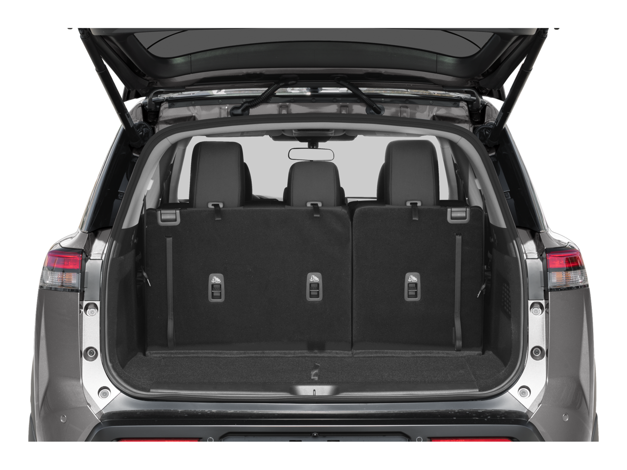 • Fixed 60-40 Bench Cloth 3rd Row Seat Front, Manual Recline, Manual Fold Into Floor, 3 Manual and Adjustable Head Restraints