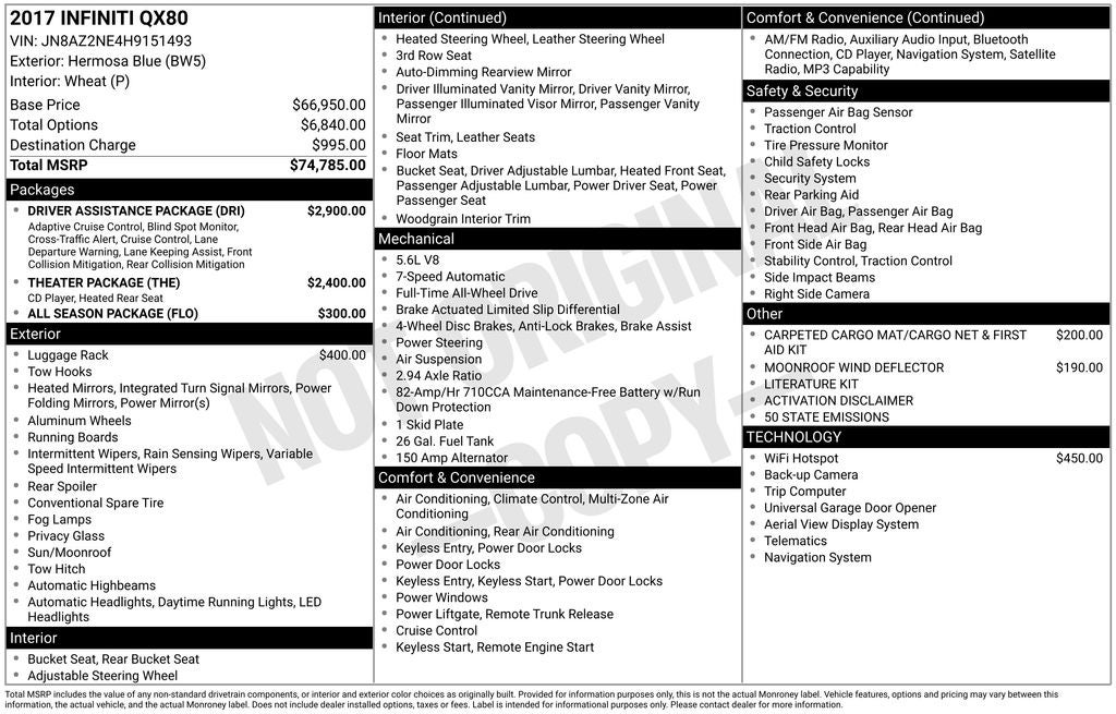 - Vehicle Name: INFINITI QX80